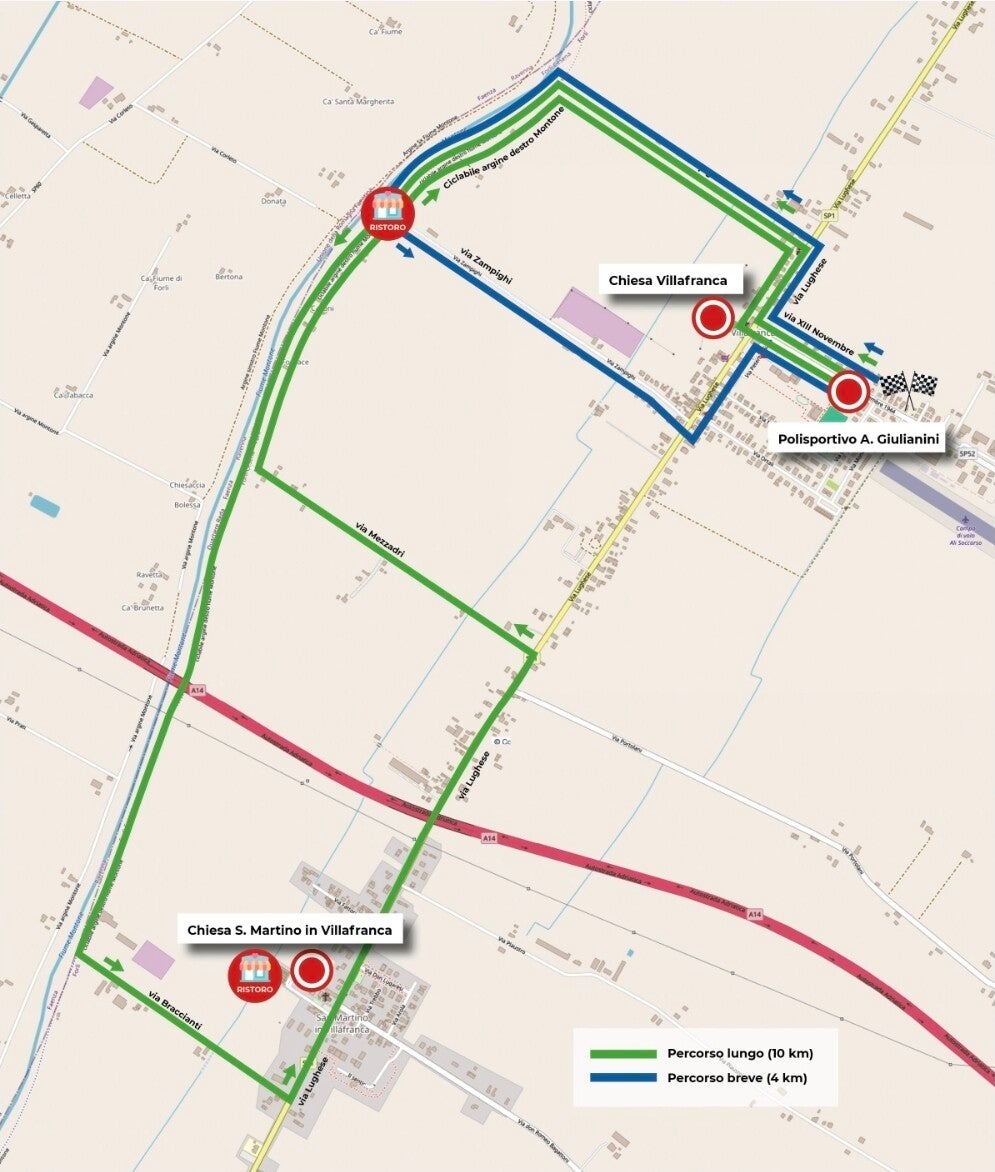 Il percorso LUNGO prevede TRE punti ristoro. Il percorso si snoda tra VILLAFRANCA e SAN MARTINO in villafranca percorrendo anche il lungofiume.